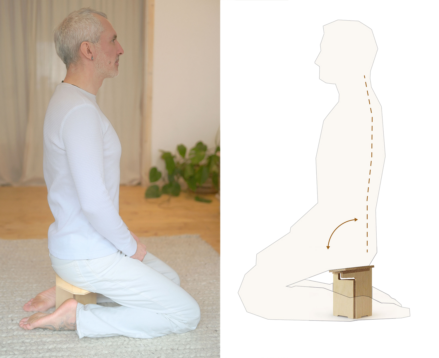 Die geneigte Sitzfläche ergibt im Zusammenspiel mit den angewinkelten Beinen beim Meditieren eine optimale Unterstützung, sodass der Rücken gerade und gleichzeitig entspannt bleibt.